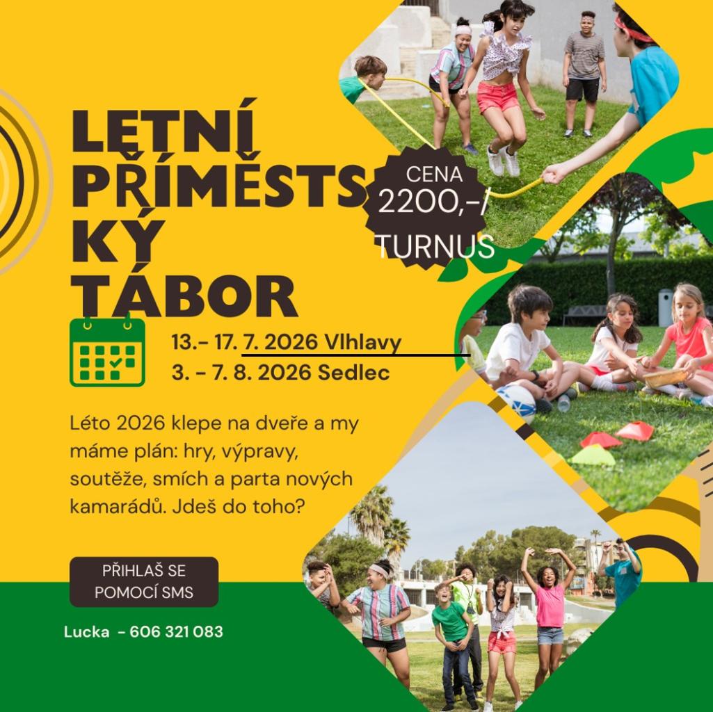 Na přiloženém plakátu naleznete nabídku letních táborů v Sedlci a Vlhlavech.