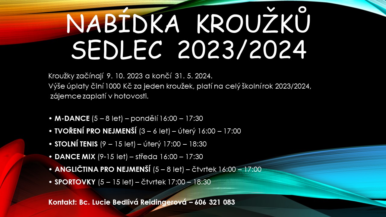 9.10.2023 začínají v obci Sedlec dětské kroužky. Na přiloženém plakátu naleznete více informací.